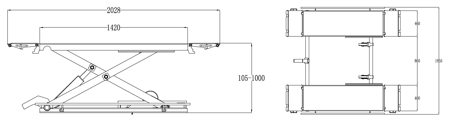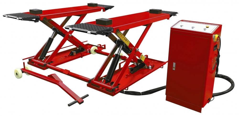 Электрогидравлический ножничный подъемник, напольный, минимальная высота 105 мм.