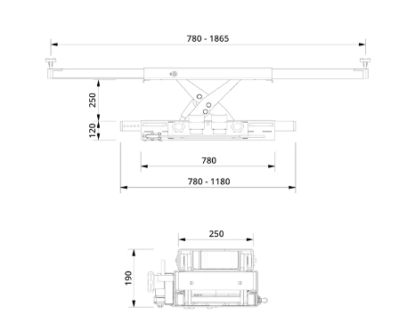 | Высота подъема осевого домкрата | 250 mm |