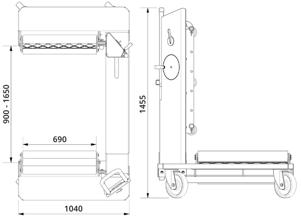 Высота: 1455 мм, длина: 1040 мм, регулируемая ширина: 1625–2375 мм