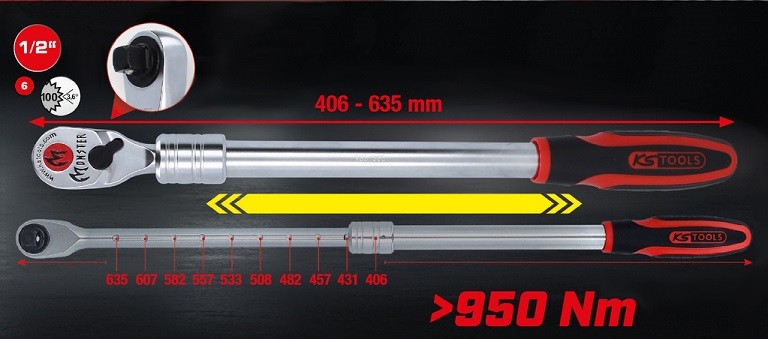 Телескопический переключающийся ключ с трещоткой Monster 1/2", 100 зубцов