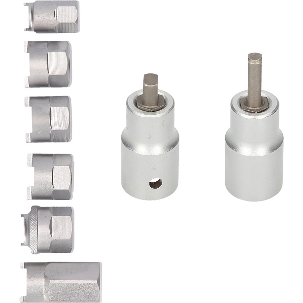 - содержит универсальные инструменты для верхних гаек поршневых штоков амортизатора