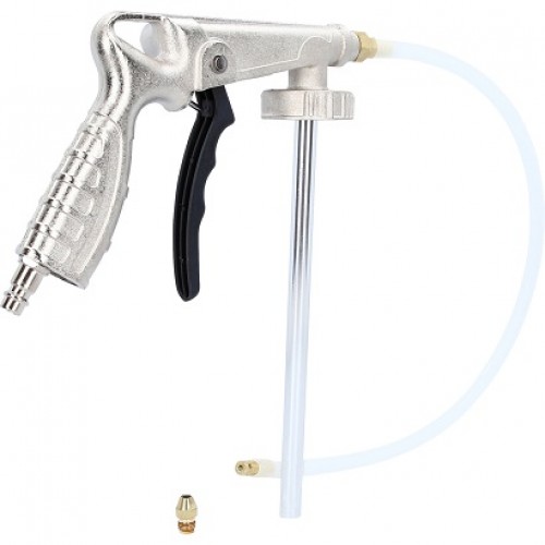 Пневматический пистолет для антикоррозионной защиты днища Brilliant Tools BT161104 предназначен для прямого навинчивания на обычные жестяные или пластиковые бутыли и картриджи. Благодаря гибкому шлангу можно обрабатывать труднодоступные места на корпусе. Высококачественное исполнение пистолета обеспечивает его долгий срок службы при ежедневном применении в мастерской.