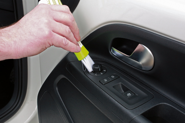 Инновационная двойная головка щетки имеет три мягких зубчатых профиля для вентиляционных отверстий, а также прочную круглую головку для приборных панелей и т. д.