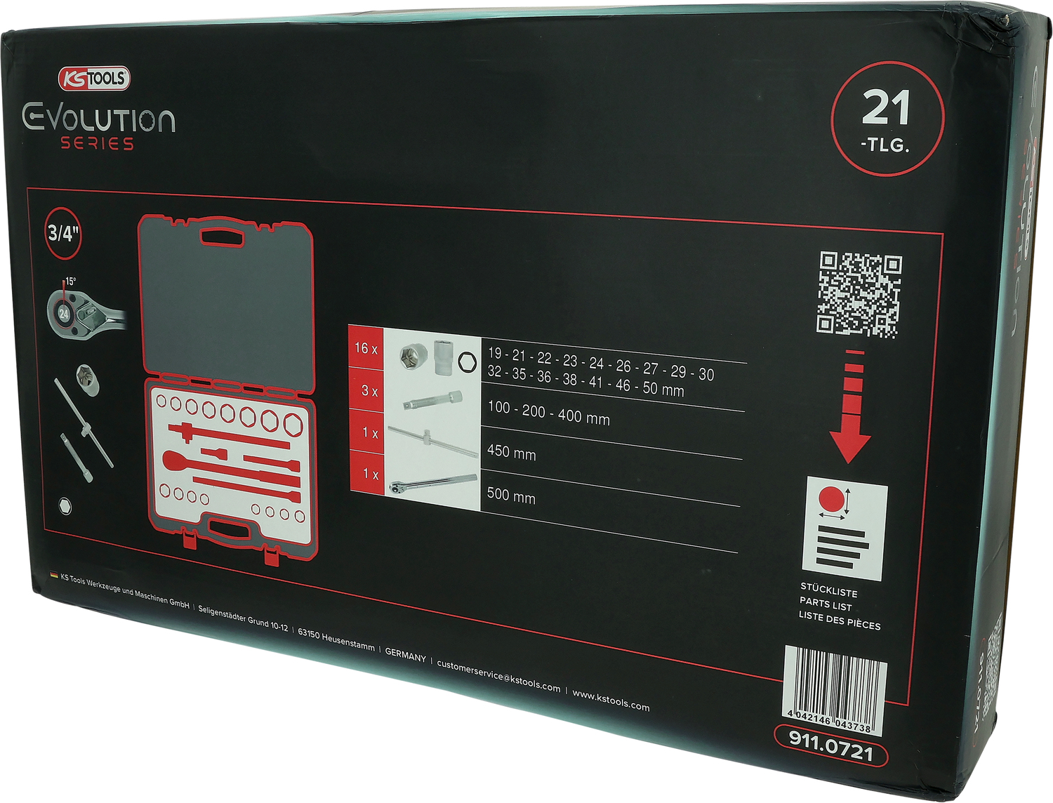 Комплект торцовых ключей 3/4", 21 шт, 6-гранных
