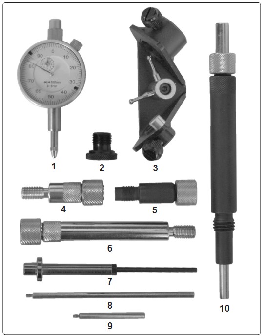Подходит для регулировки дизельных топливных насосов на двигателях, оборудованных Bosch VE Rotary, Kiki, Nippon Denso, CAV Rotodiesel – с верхним входным окном. Эти системы в основном встречаются на легковых автомобилях и легких грузовиках. В комплекте с часовым индикатором в коробке для хранения.