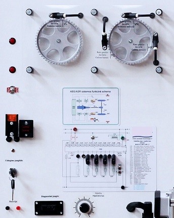 Mācību demonstrēšanas stends ar funkcionējošu elektronisko bremžu antibloķēšanas sistēmu ABS ir uzstādīts uz mobīlās alumīnija karkasa konstrukcijas. Mācību demonstrācijas stends ir paredzēts apmācībai un iepazīstināšanai ar bremzēšanas sistēmu ABS, kā arī labaratorijas darbu izpildei uz tā.
