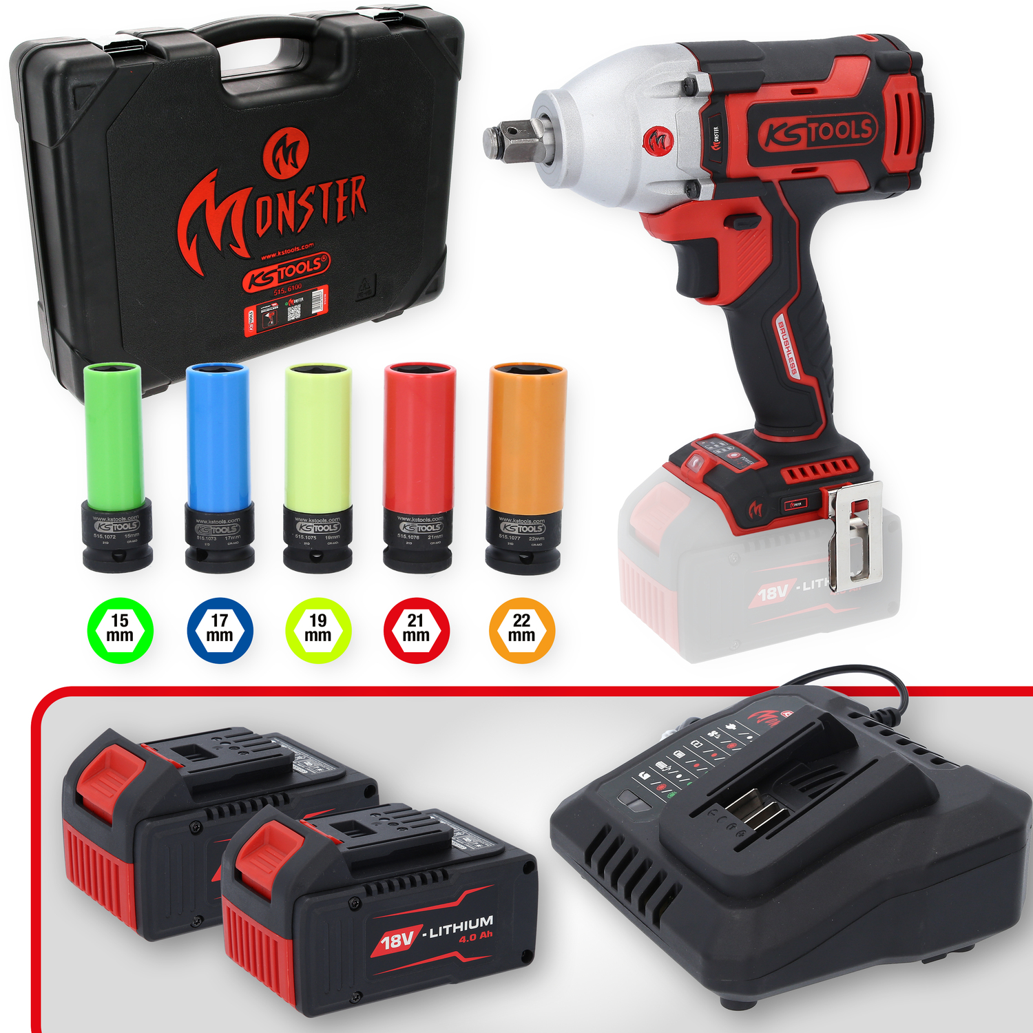 eMONSTER 1/2“ Brushless akumulatora triecienskrūvgrieža komplekts 515.6100 - Ļoti jaudīgs ar 690 Nm - Ietilpst arī 2 x 4,0 Ah akumulatori un 8 A ātrās uzlādes ierīce – Reģistrējoties tiešsaistē, 10 gadu garantija Brushless motoram!