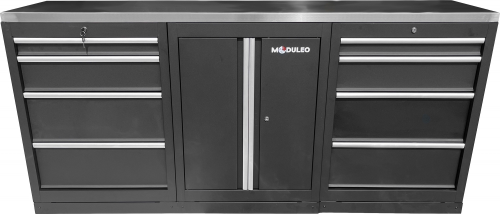 Darbnīcas skapju sistēmas papildinājuma modulis, nerūsošā tērauda darba virsma, darbgalds