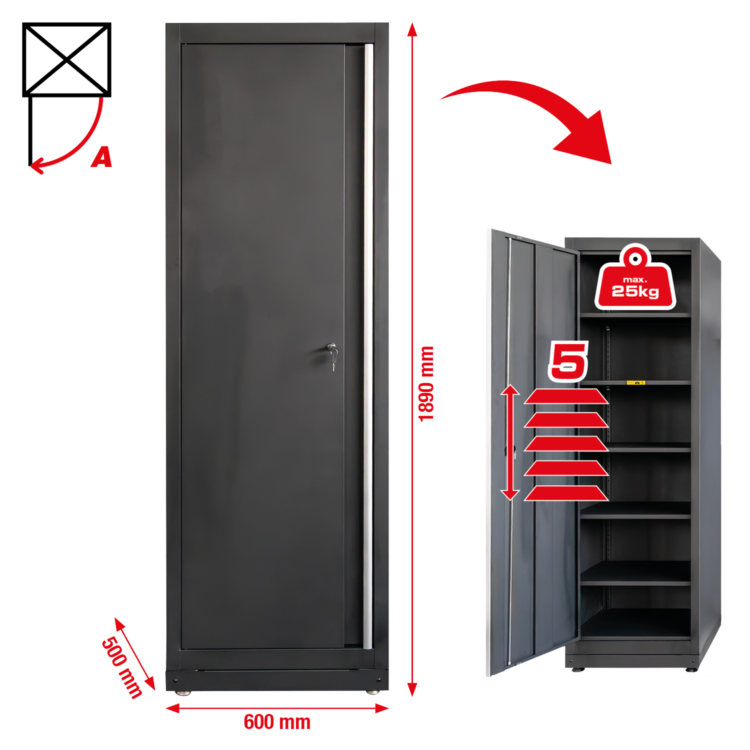 Darbnīcas skapju sistēma, augstais skapis ar kabeļa caurvadu labajā pusē