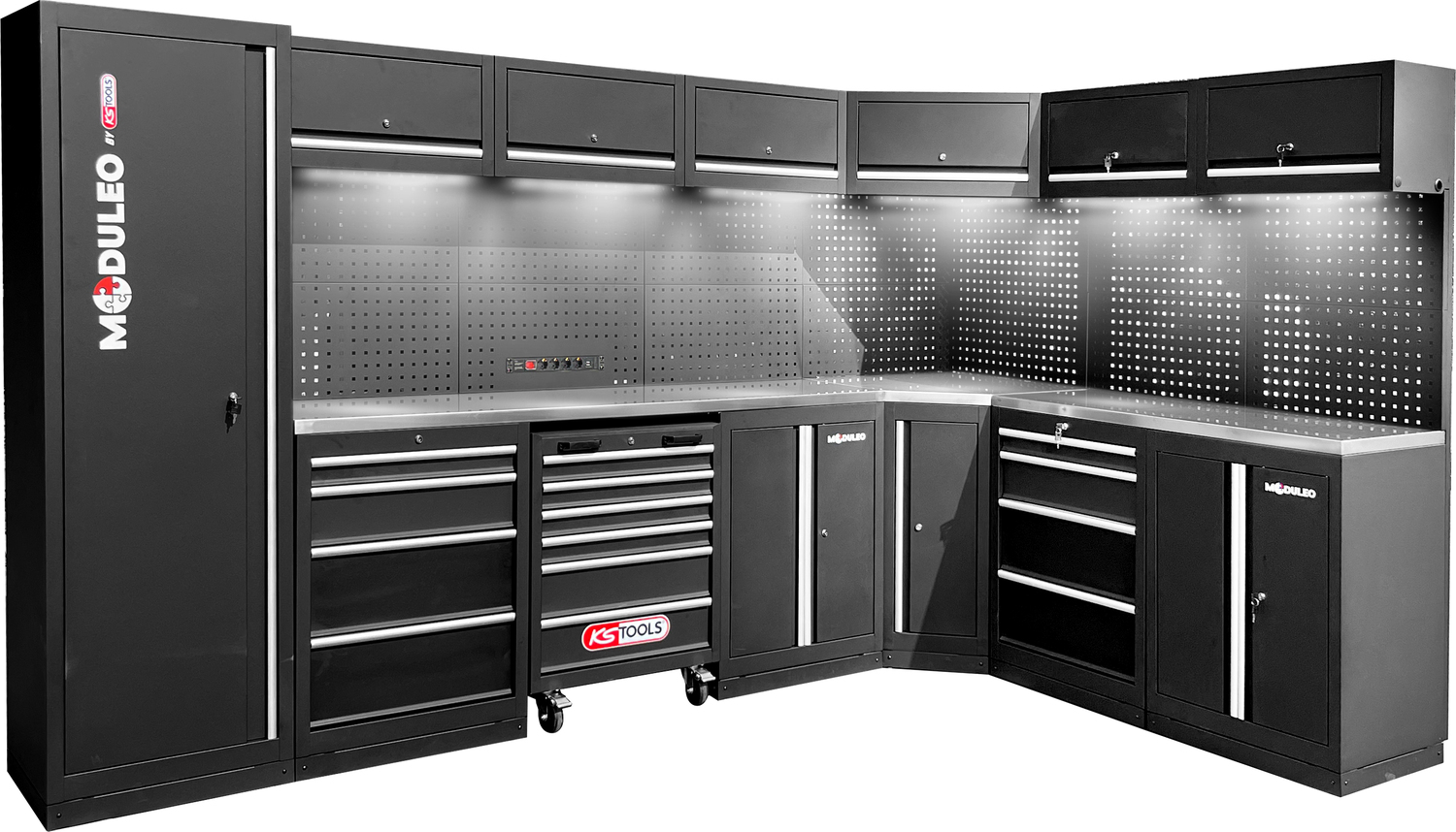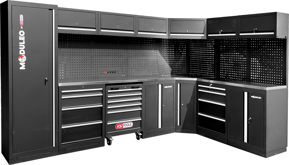 - iekļauti darbnīcas ratiņi ar 6 atvilktnēm (4x 75 mm, 2x 150 mm)