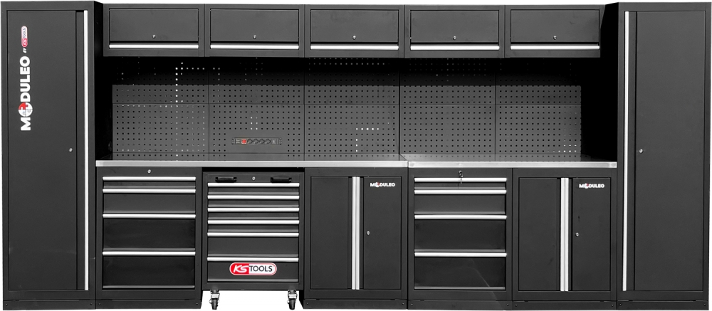 - iekļauti darbnīcas ratiņi ar 6 atvilktnēm (4x 75 mm, 2x 150 mm)