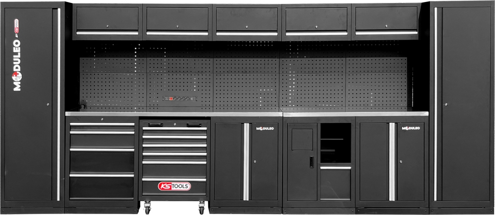 - iekļauti darbnīcas ratiņi ar 6 atvilktnēm (4x 75 mm, 2x 150 mm)
