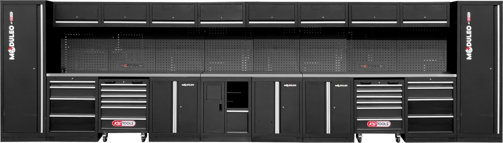 - 2 x iekļauti darbnīcas ratiņi ar 6 atvilktnēm (4x 75 mm, 2x 150 mm)