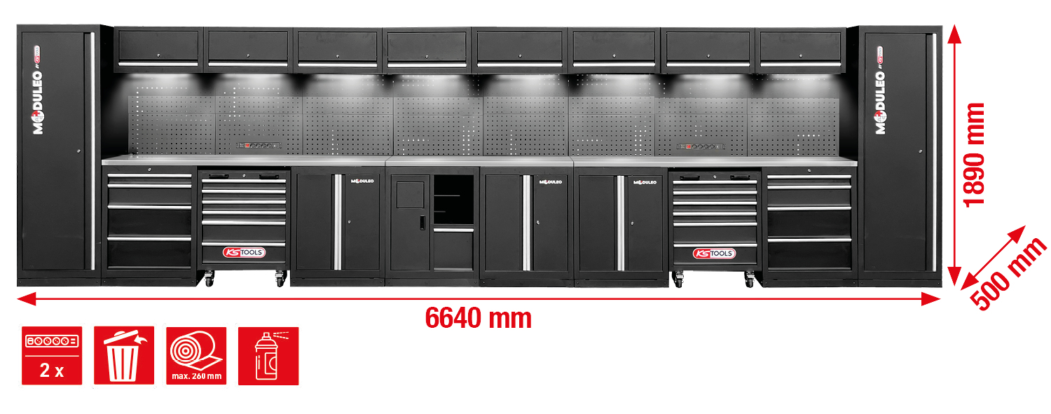 Darbnīcas skapju sistēma, taisna, 6640 x 500 mm, 2. variants