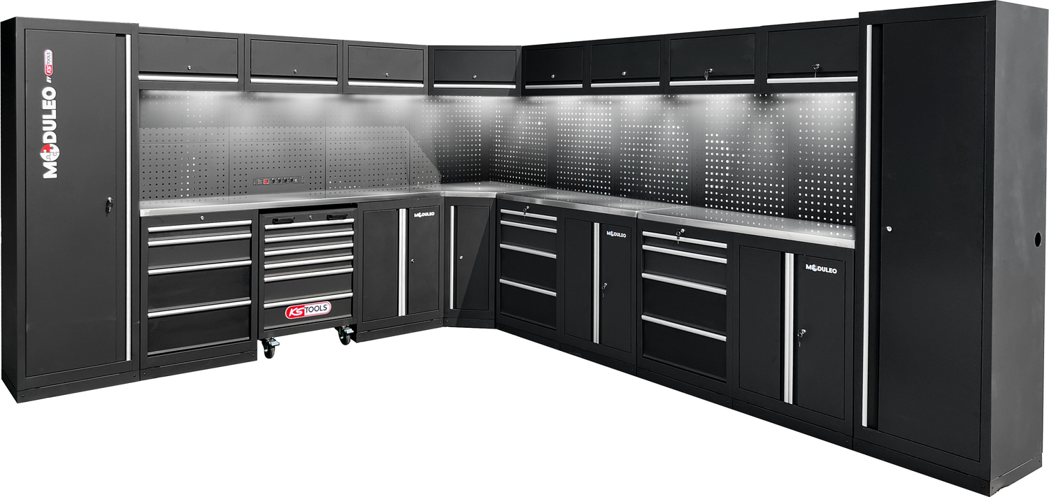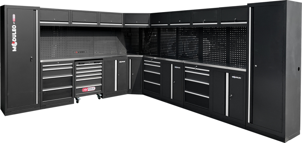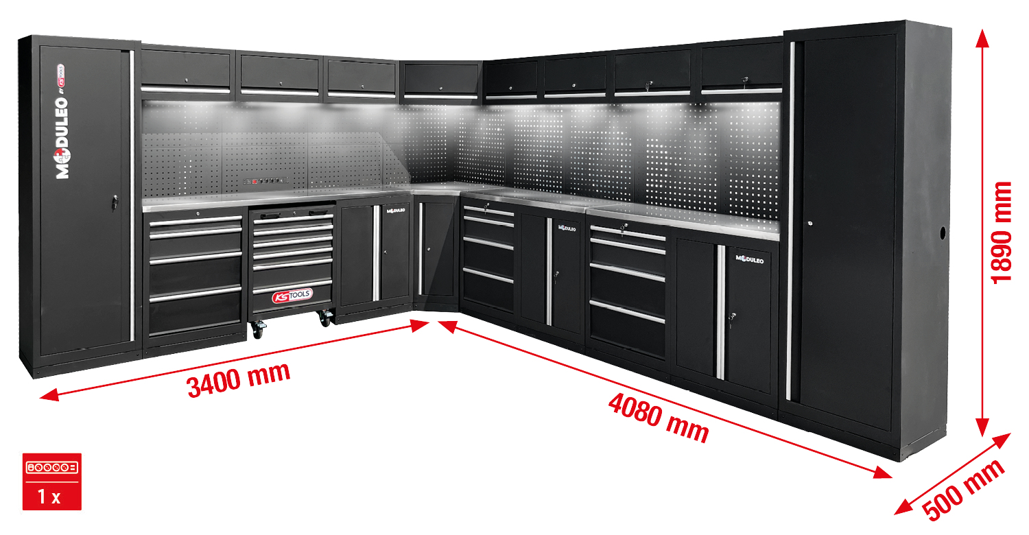 Darbnīcas skapju sistēma, L forma, 3400 x 4080 mm, 2. variants