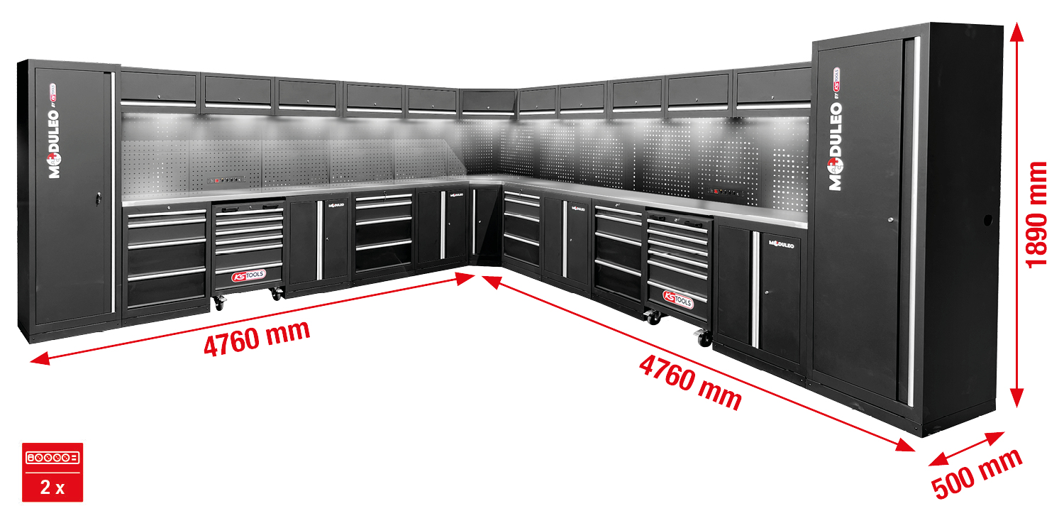 Darbnīcas skapju sistēma, L forma, 4760 x 4760 mm