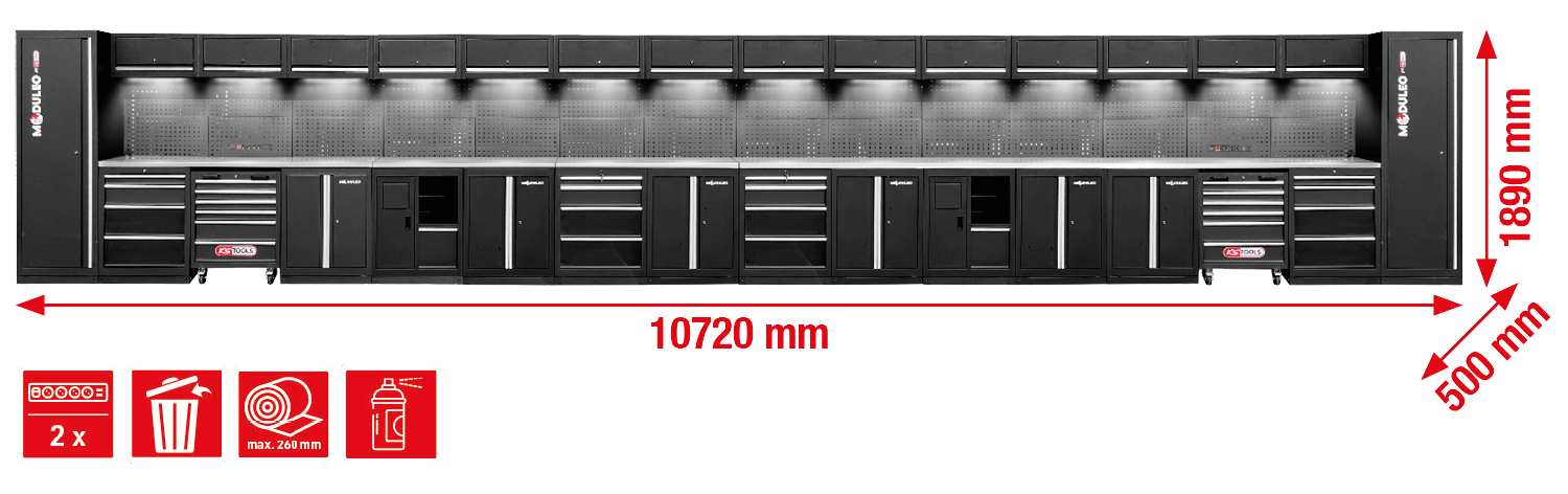 Darbnīcas skapju sistēma, taisna, 10720 x 500 mm