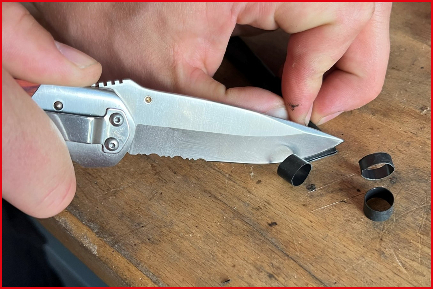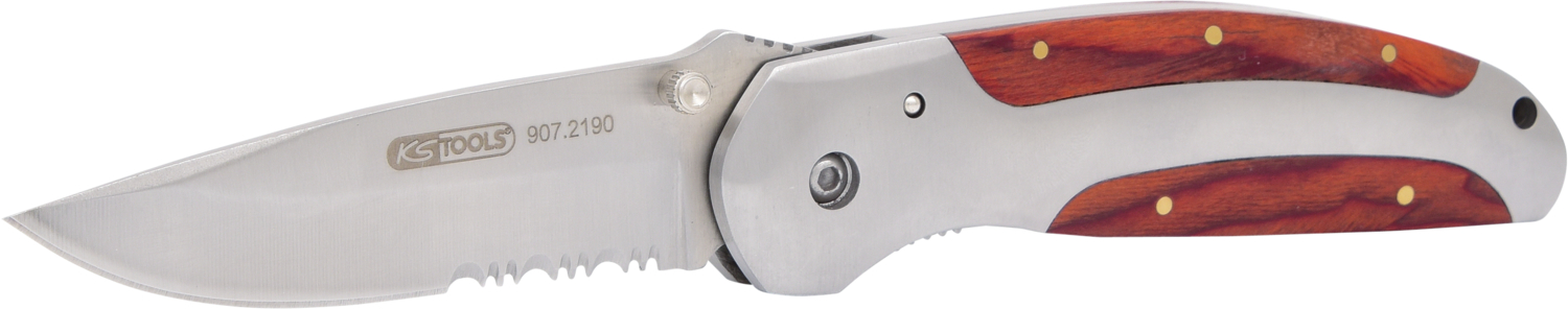 • nerūsējošā tērauda asmens ar viļņotu daļu