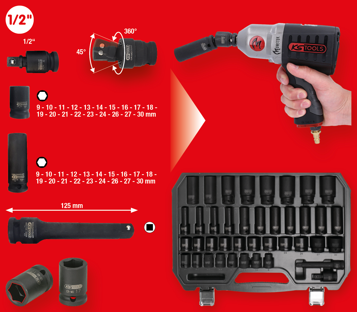 1/2" Sešstūra spēka muciņu uzgaļu komplekts, 40 -daļīgs