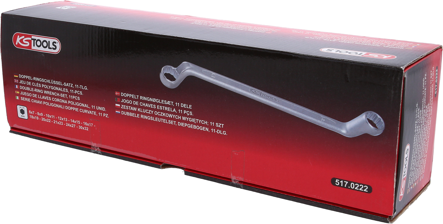 Divpusējo gredzenatslēgu komplekts, saliektas, 11-daļīgs, 6-32mm