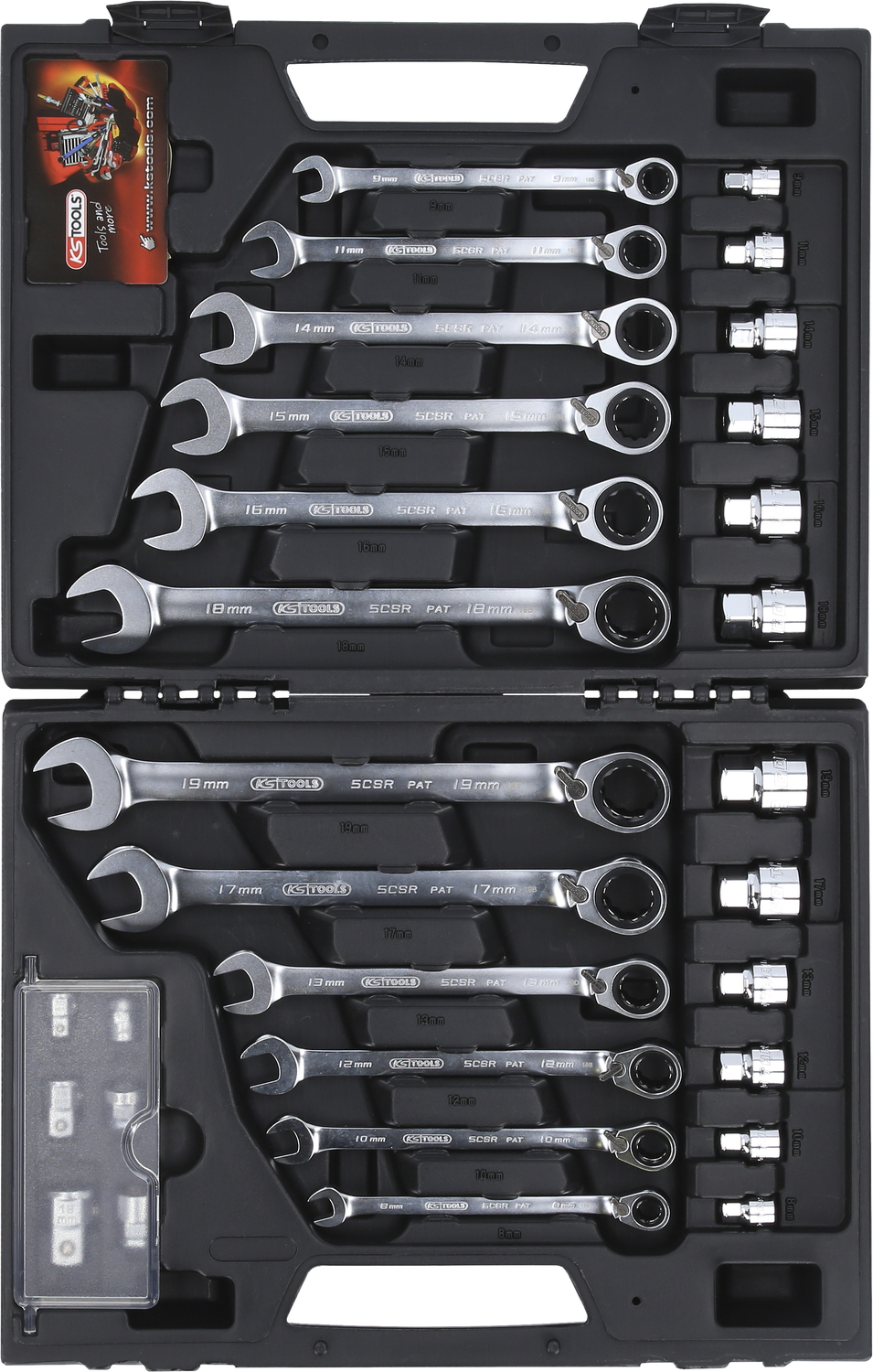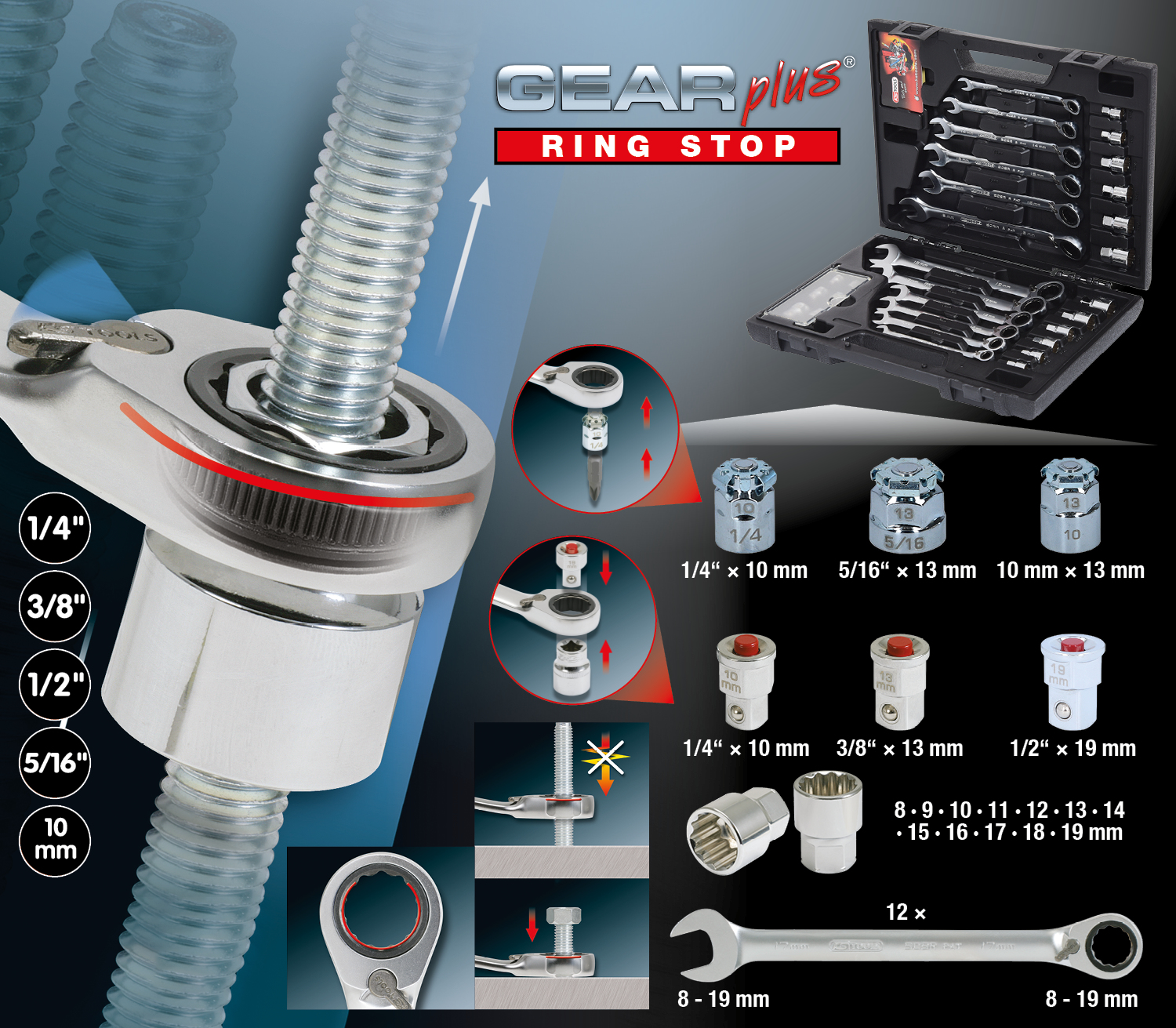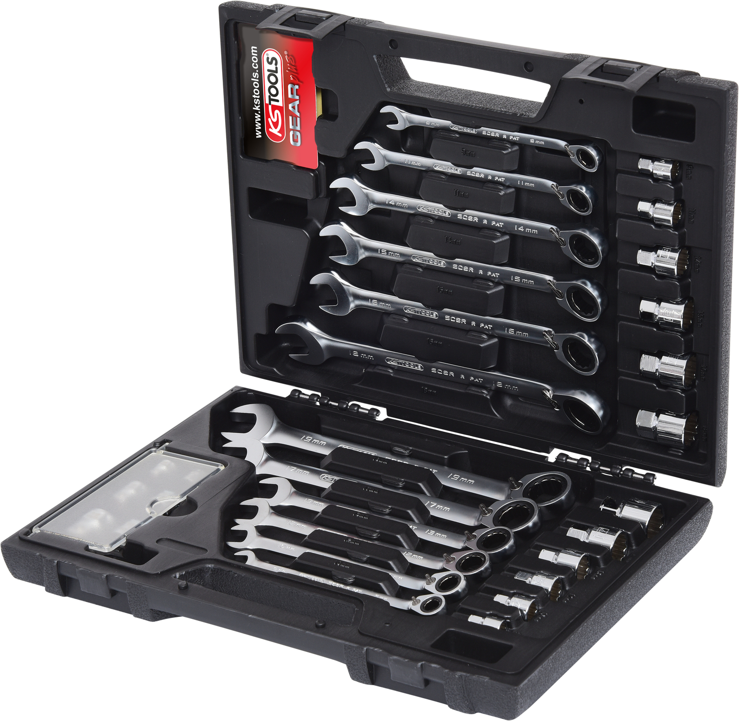 GEARplus RINGSTOP dinamometrisko kombinēto uzgriežņu atslēgu komplekts, 30 -daļīgs, ar adapteru