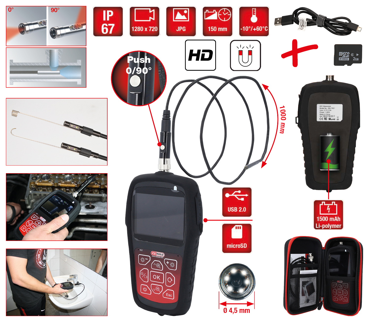 - Lielākais iespējamais skata leņķis caur speciālu kameru zondes galvā