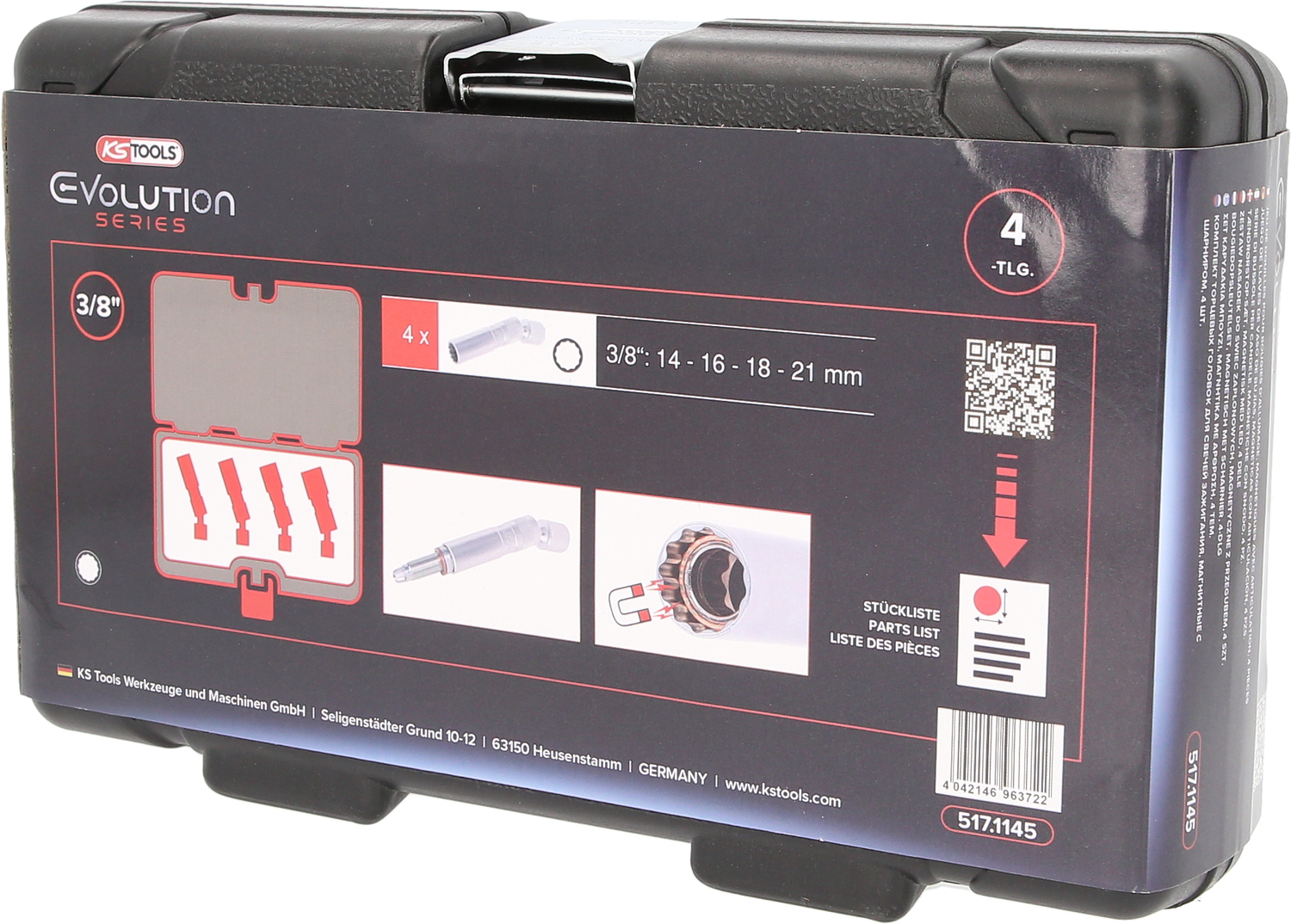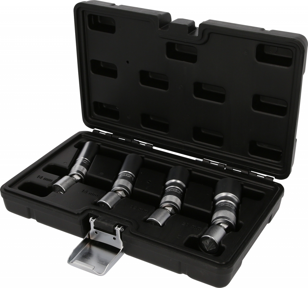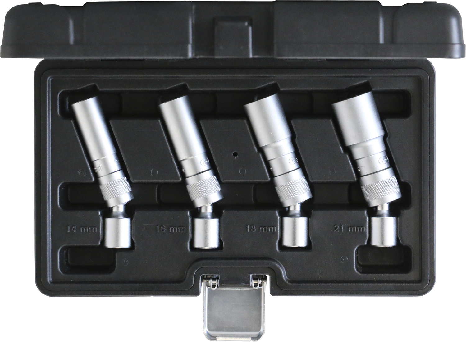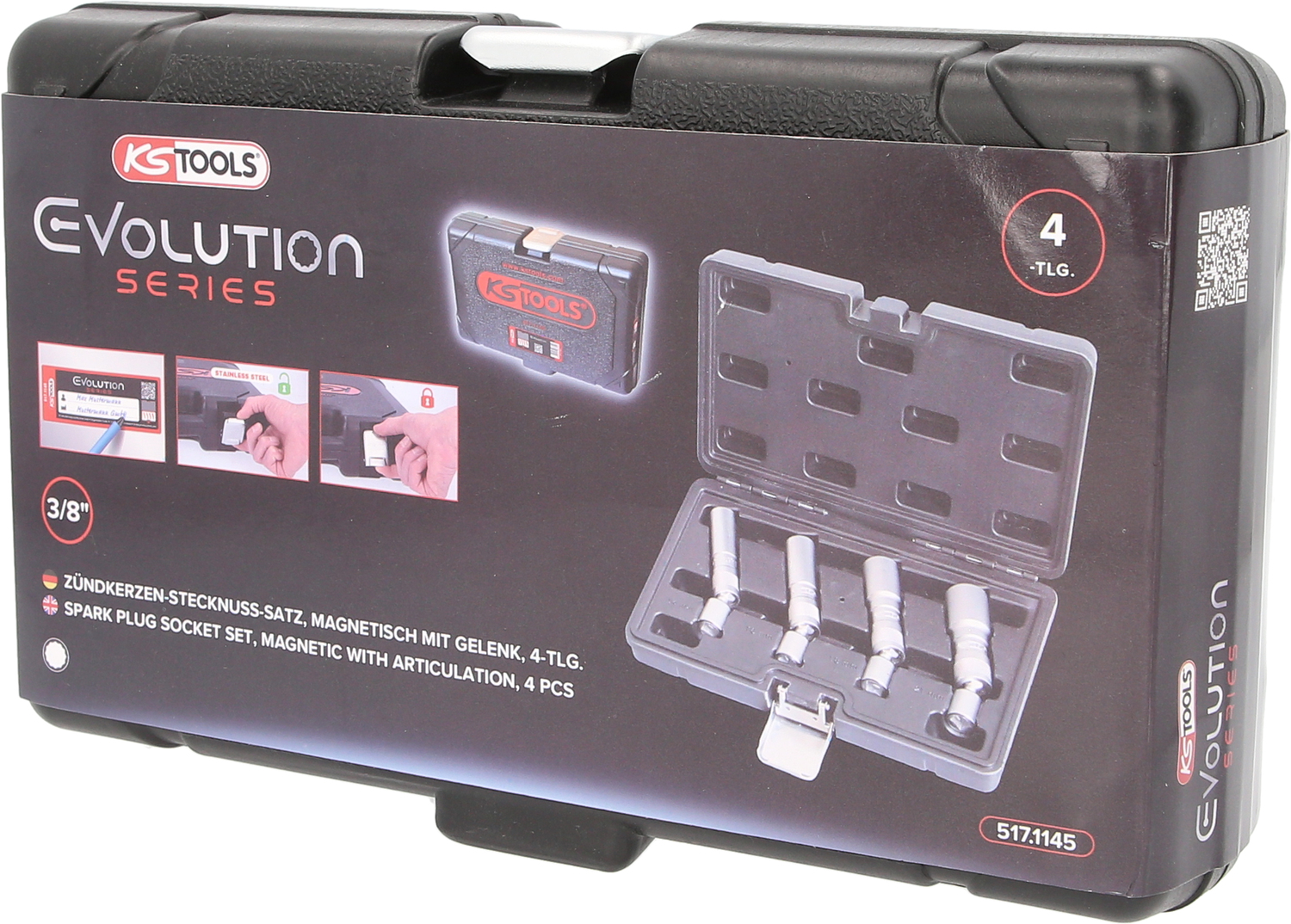 3/8" aizdedzes sveču galatslēgas uzgaļu kompl., 4 gab., magnētiski ar šarnīru