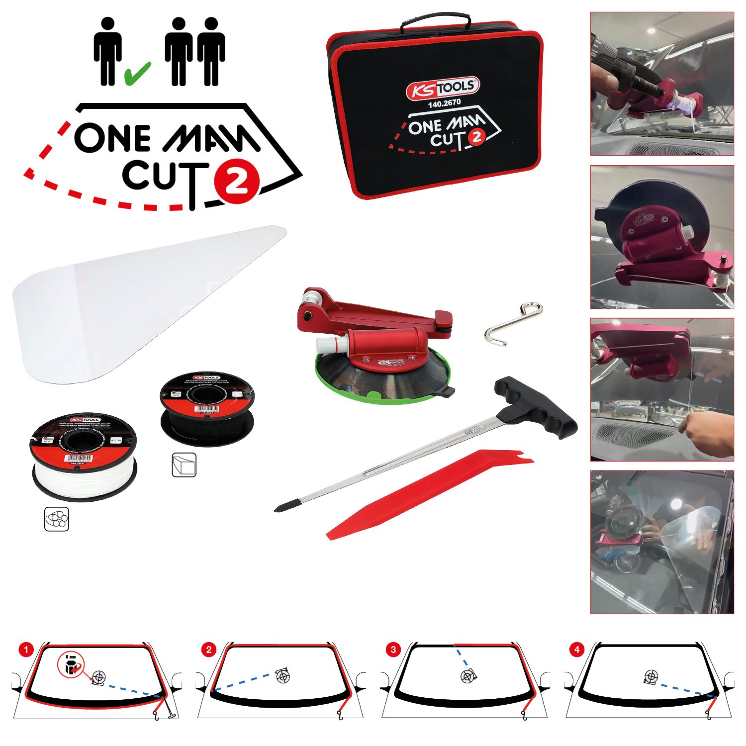 - ideāli piemērots līmētu vējstiklu, kā arī gandrīz visu aizmugurējo un sānu stiklu profesionālai un saudzīgai izņemšanai