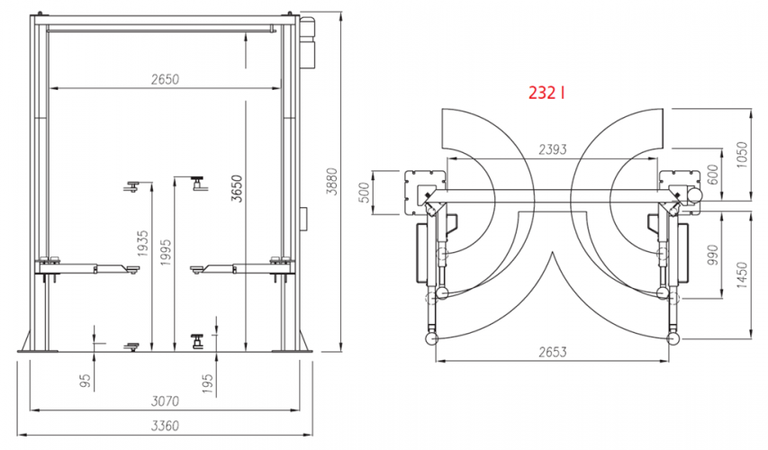 - Trīsdaļīgas asimetriskas atbalsta sviras, kas piemērotas vieglai piekļuvei šasijai, kad tā ir ievilkta, un ideāli piemērota gariem un platiem transportlīdzekļiem, ja tie ir pagarināti