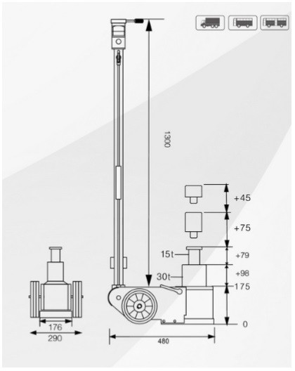 Pneimohidrauliskais domkrats 30/15t