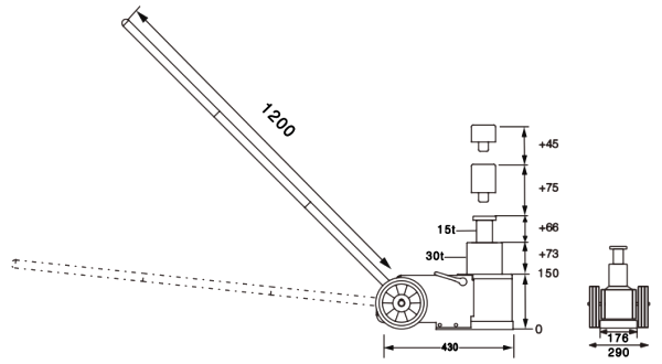 Profesionāls pneimohidrauliskais domkrats ar demontējamu rokturi.
