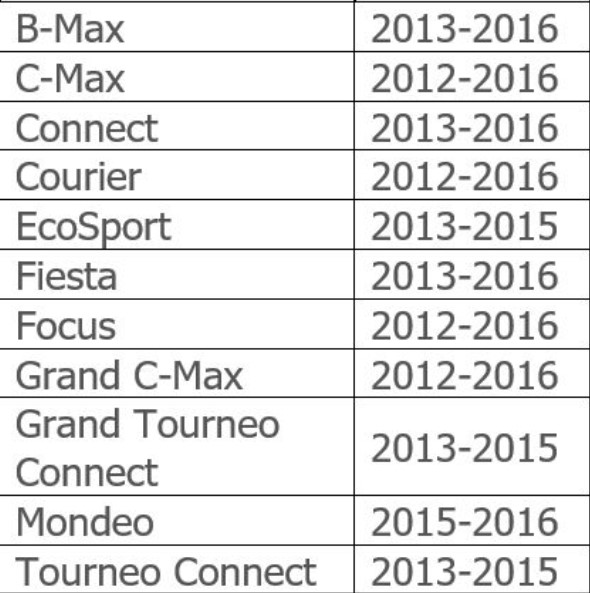 1.0 EcoBoost: M1CA, M1CB, M1CB, M1DA, M1DC, M1DD, M1JA, M1JC, M1JE, M1JH, M1JJ,