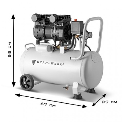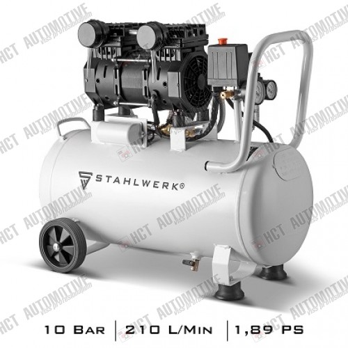 STAHLWERK bezeļļas gaisa kompresoram ST 310 Pro ir aprīkots ar 30 L resīveru un tas nodrošina izejas gaisa spiedienu 10 bar. Kompresors darbojas ar beznodiluma bezsuku motoru, un ir ļoti kluss darbībā. Motora jauda ir 1,89 ZS. Ar 23 kg svaru šis kompresors ir viegli transportējams un ļoti kompakts un, tas ir vieglākais un reizē jaudīgākais kompresors savā svara kategorijā!