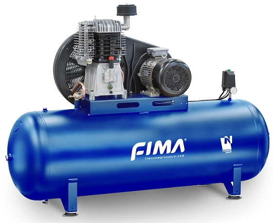 Itāļu ražotāja FIMA siksnas piedziņas divpakāpju gaisa kompresors. Strādājot zem augsta spiediena prasībām, divpakāpju tehnoloģija sāk darboties ar diviem dažāda izmēra cilindriem un ar starpposma dzesēšanas sistēmu. Tas ļauj samazināt darba slodzi un uzturēt lielu tilpumu abos cilindros. Tā rezultātā tiek iegūts ļoti efektīvs kompresors, kas būs noderīgs lietotājam vissarežģītākajos apstākļos.
