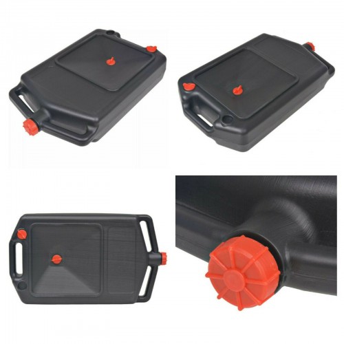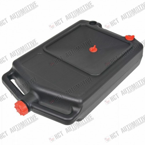 Designed for collecting the drained liquids. Low depth enables putting under the vehicle. Possiblity of filling from the side. Transporting handle. Container volume 8 l.