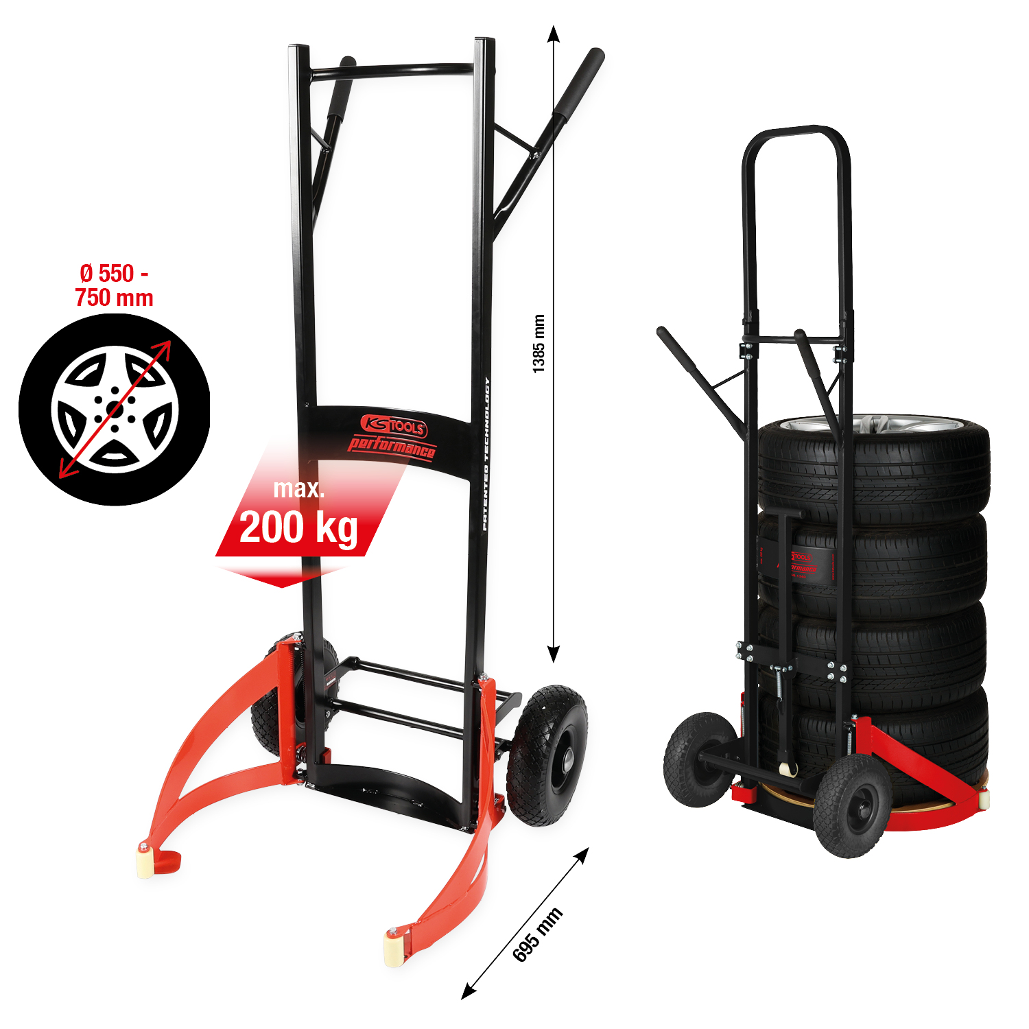 - For transporting four tyres or wheels with Ø 550 – 750 mm