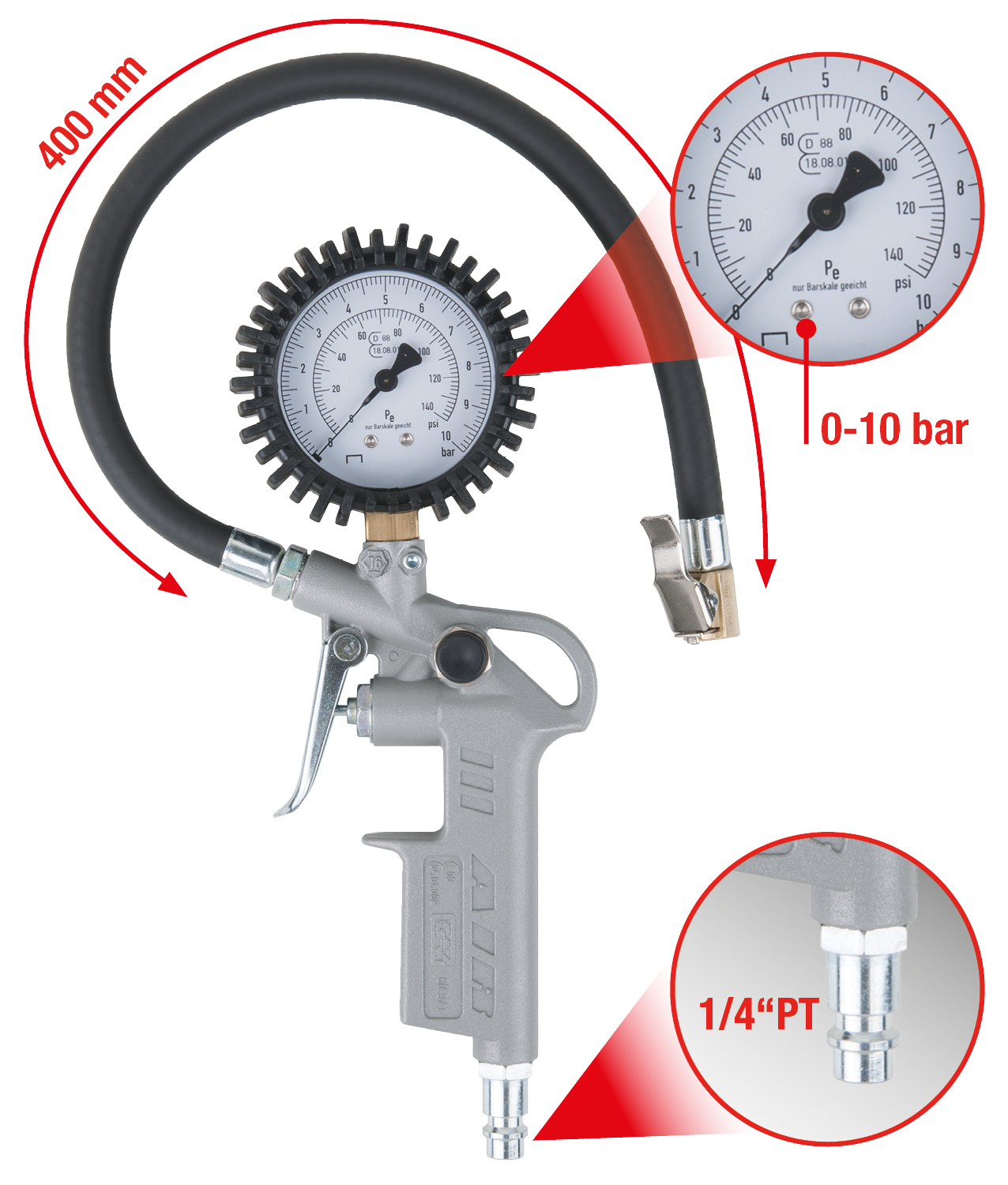 - Operating pressure in bar: max. 6,3 bar (90 psi)