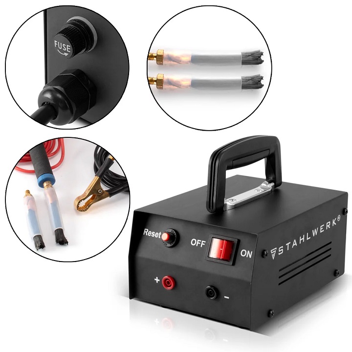 With the STAHLWERK weld seam cleaning device, weld seams can be effectively cleaned, passivated and refined. Electrolytic cleaning of weld seams has the advantage that the weld seam is corrosion-resistant after treatment and, in contrast to cleaning with a grinder, has a smooth surface. Cleaning weld seams using the electrolysis process is environmentally and user-friendly. Electrolytically treated weld seams are used in tank and boiler construction or in the food industry in particular. But even demanding welding work in the home and hobby sector simply looks better when the weld seam is smooth, clean and free from heat discoloration or oxide layers. The SRG-300 Pro can be used as a pickling device for weld seams with a suitable pickling agent or pickling paste. The STAHLWERK SRG-300 Pro is manufactured in Germany, very compact and easy to transport.