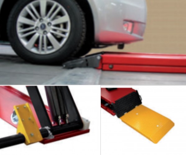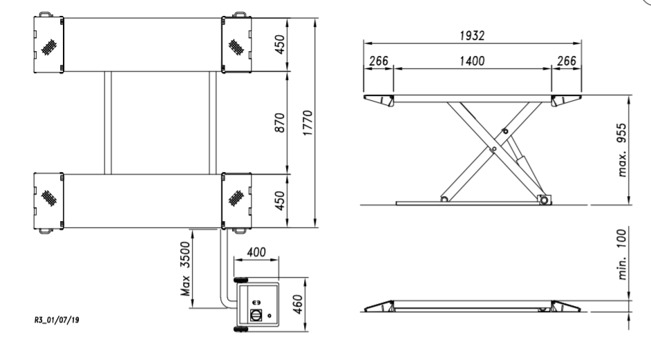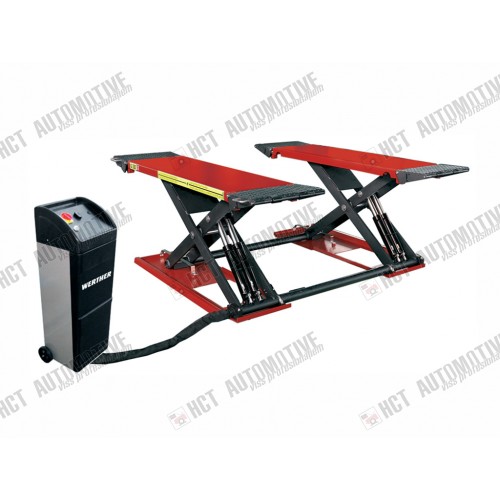 Electro-hydraulic, mid-raise scissor lift for tyre and car body shops