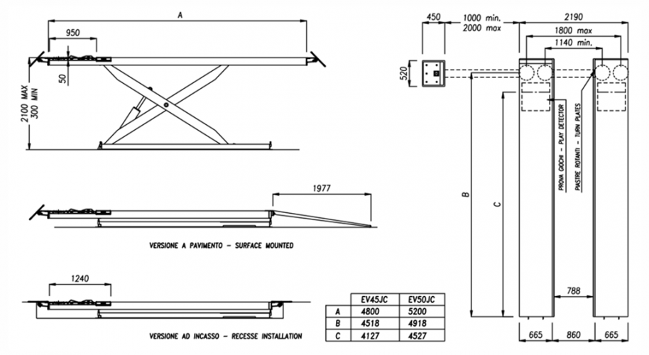 - Mechanical locks between the cylinders for a perfect levelling of the platforms – OPTION 1: recessed installation kit – OPTION 2: on floor installation kit