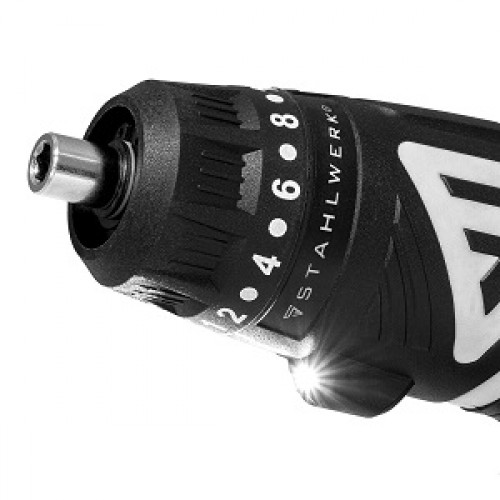 Thanks to the low weight and ergonomic handle, the cordless screwdriver can be operated easily and intuitively