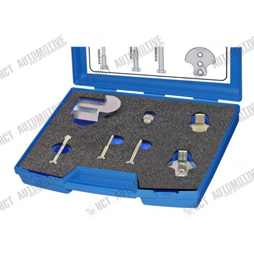 Removal/assembly of Poly-V elastic belts for single and double pulleys. In order to apply to double pulleys you must check how much space is available, for the use of the equipment. Assembly and adjustment with centring device. Quick, accurate and safe assembly and disassembly of elastic belts, without causing any damage. The belt cannot be reused without using this tool.