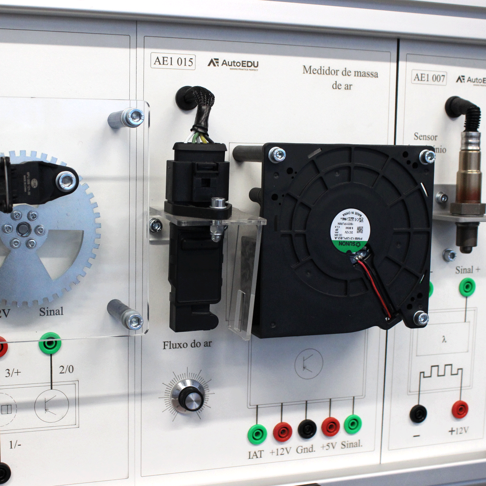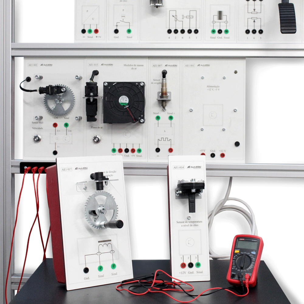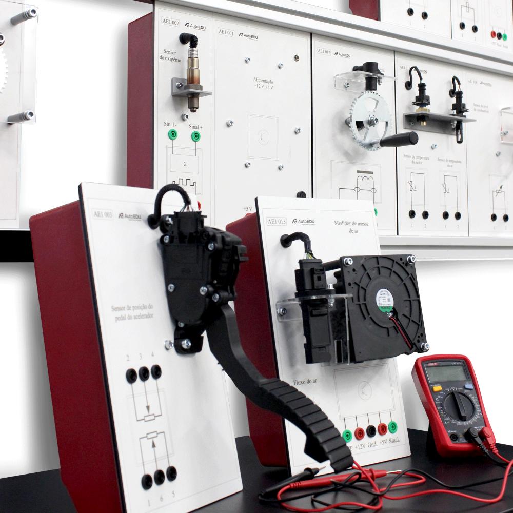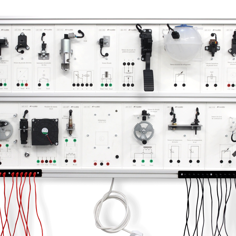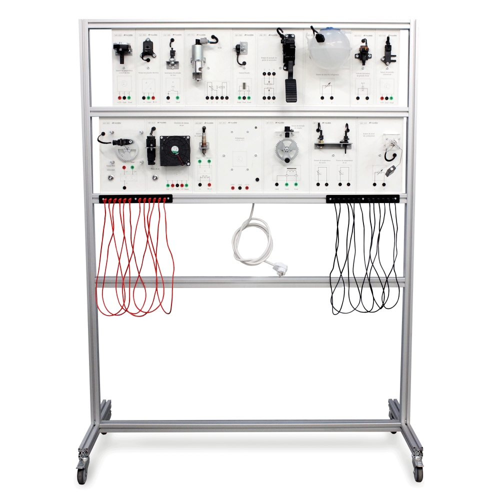 Mokomoji stovėjimo vieta, skirta praktiniam mokymui automobilių elektronikos sistemose. Ji apima kelis išimamus modulius, leidžiančius studentams individualiai testuoti, matuoti ir analizuoti įvairius automobilių jutiklius ir veikiklius. Stovėjimo vieta suteikia kontroliuojamą aplinką mokytis signalų apdorojimo, jutiklių kalibravimo ir elektros gedimų šalinimo.