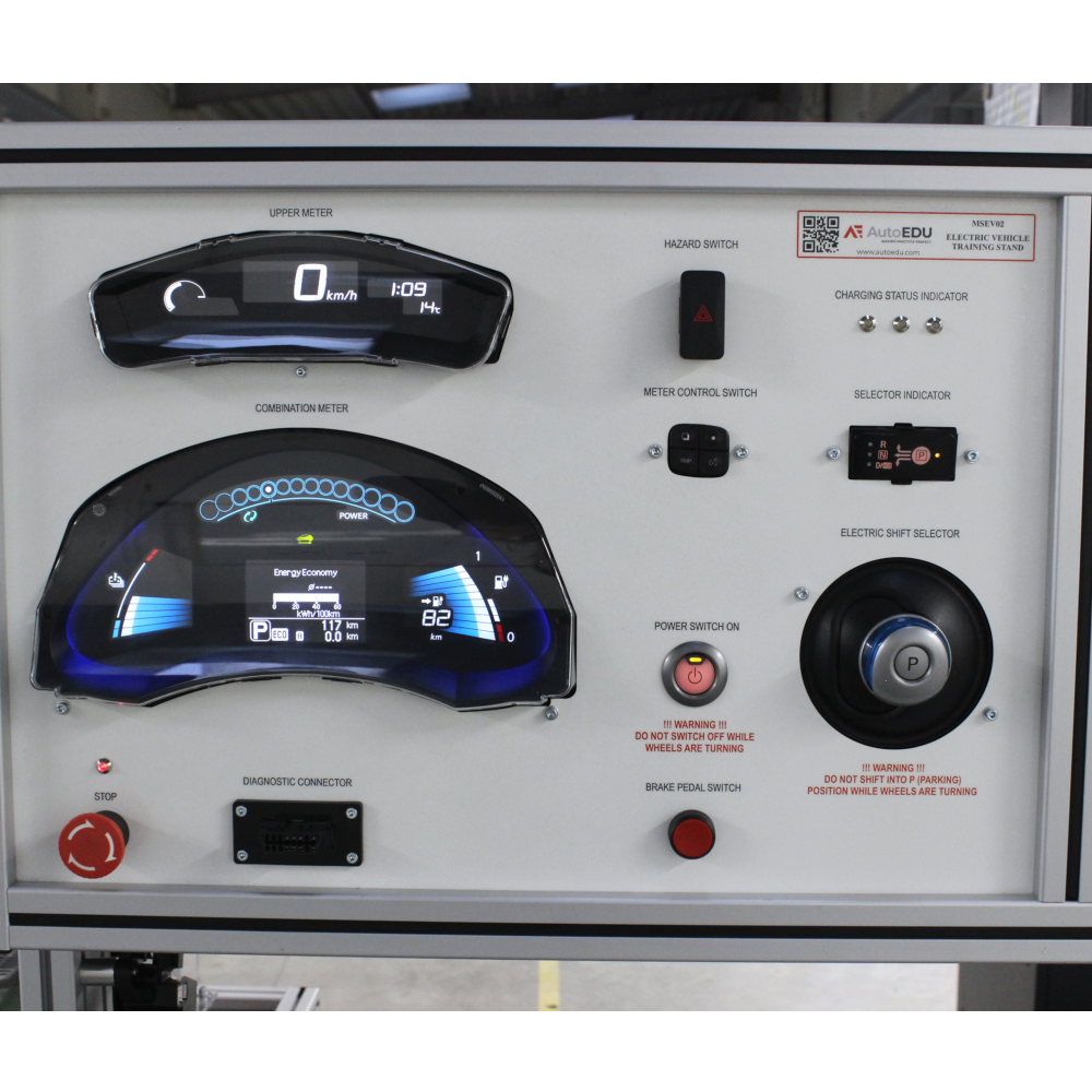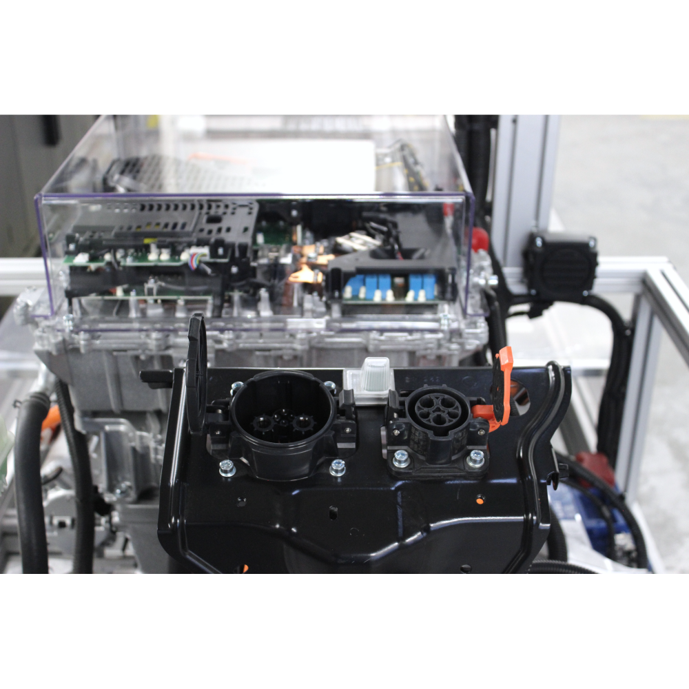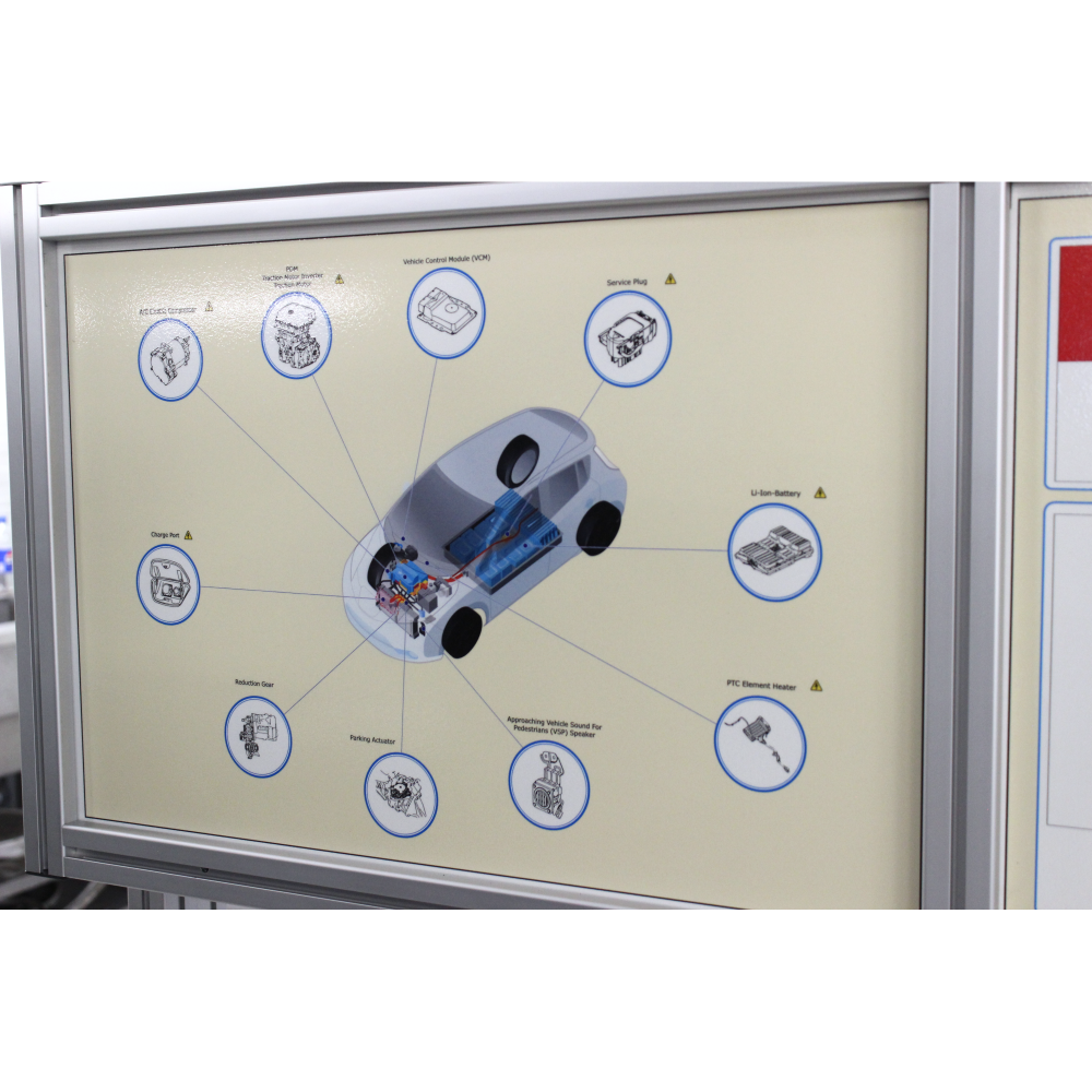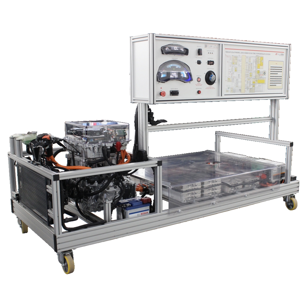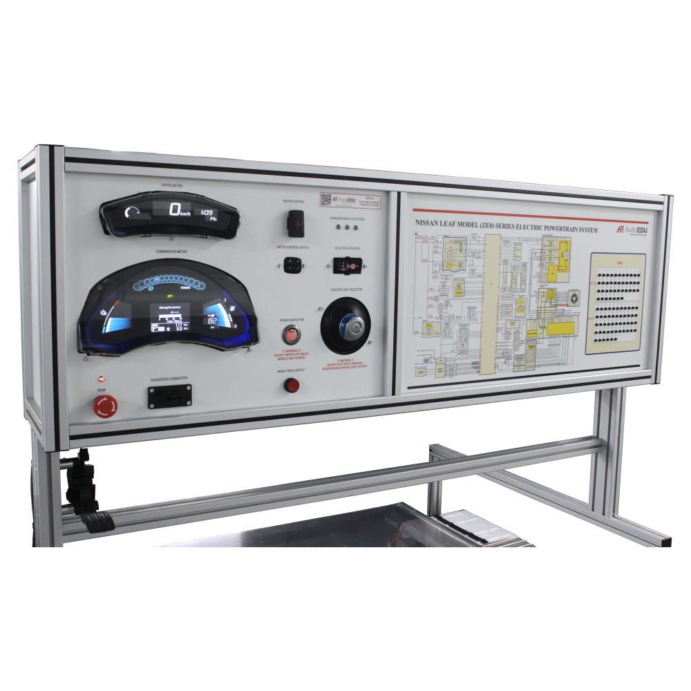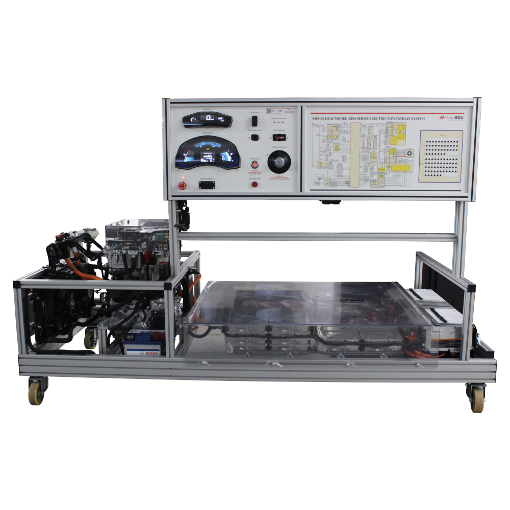 Visiškai funkcinis elektrinio transporto priemonių mokomasis stovėjimas paremtas „Nissan Leaf“ elektromobiliu, siūlantis praktinį ir teorinį mokymo patyrimą naudojant tikrus elektrinio transporto priemonių komponentus. Šis mokomasis stovėjimas apima pagrindines elektrinių transporto priemonių sistemas, tokiu kaip elektrinis variklis, keitiklis, aukštos įtampos baterija, aukštos įtampos kabeliai, įkrovimo lizdas ir kitus svarbius elementus. Visi komponentai prijungti su originaliais aukštos įtampos „oranžiniais“ kabeliais ir apsaugoti plexiglaso dėžėmis saugumui.