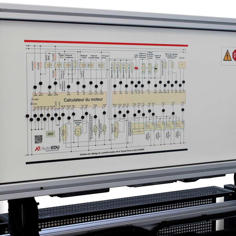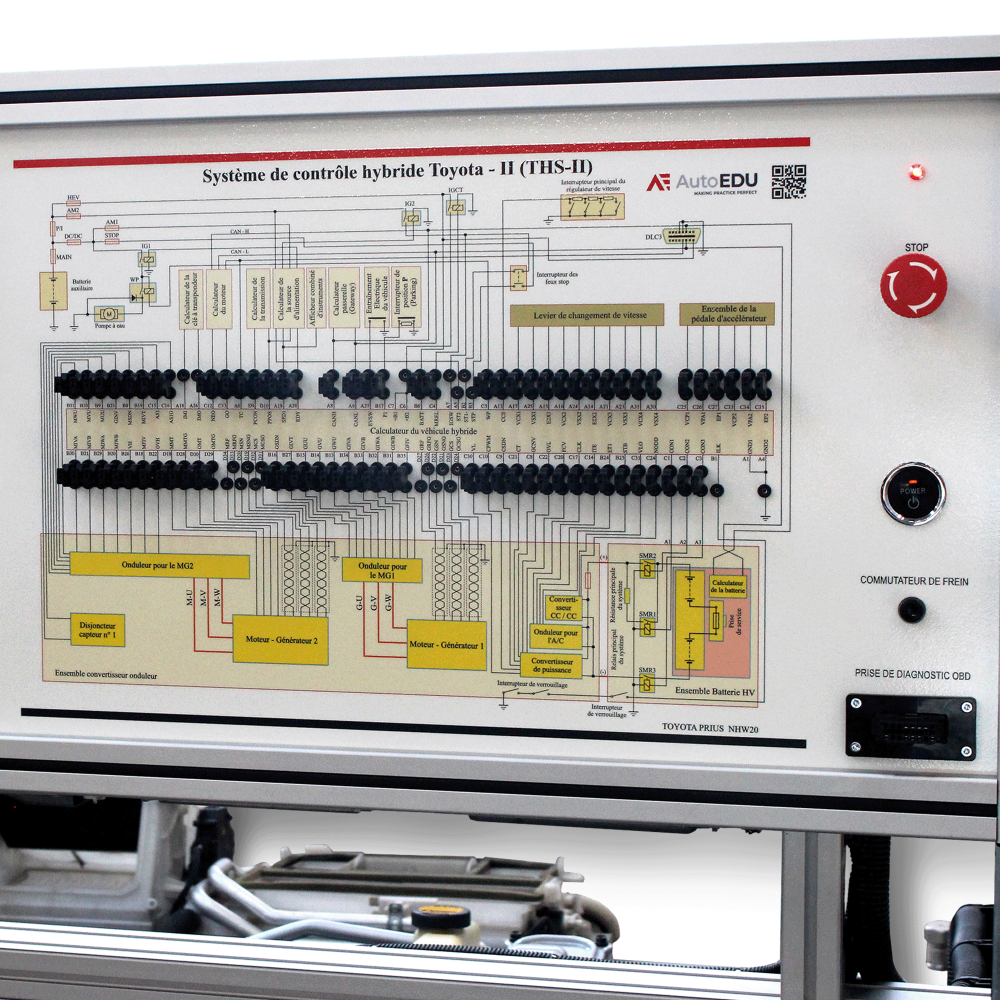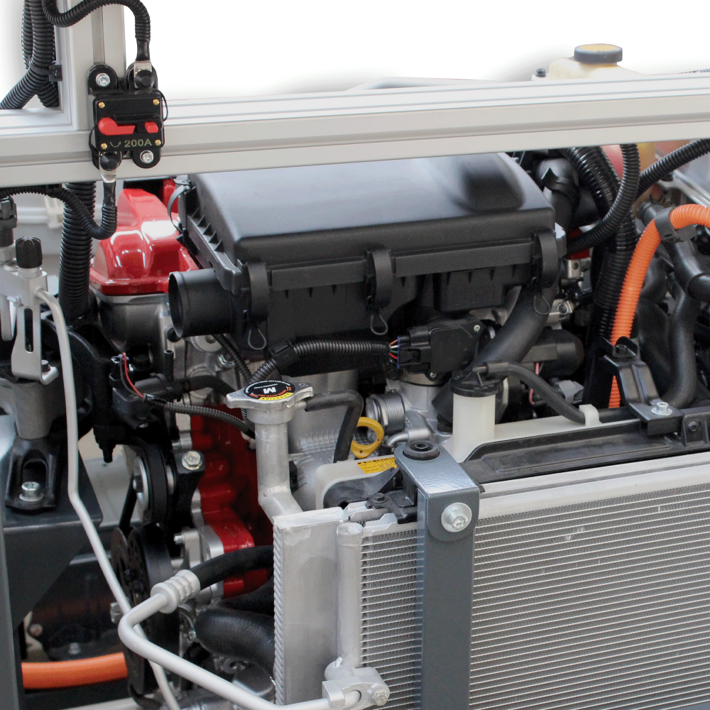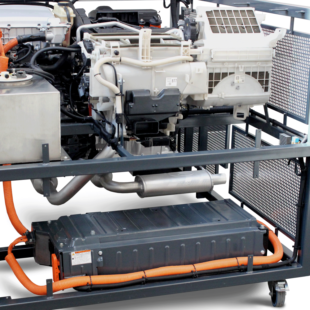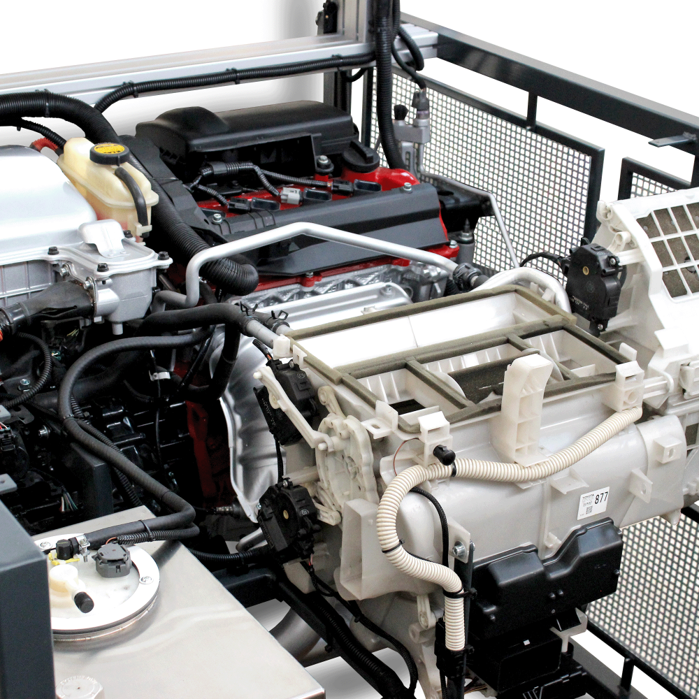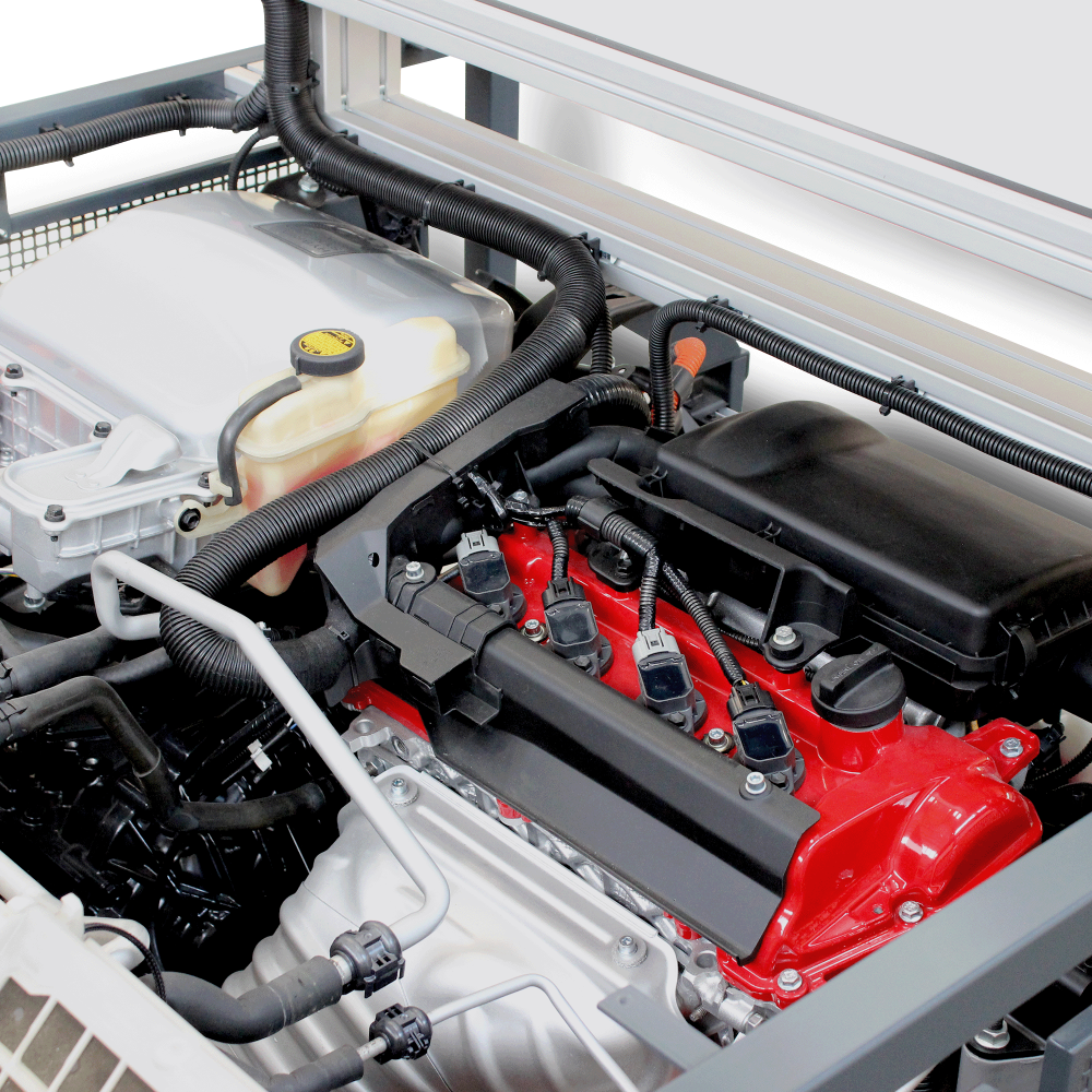 Pilnai veikiantis hibridinis elektrinis sistemą, kurioje sumontuotas benzininis vidaus degimo variklis mobilioje konstrukcijoje. Hibridinė sistema yra skirta demonstruoti vidaus degimo variklį, elektros variklį, pavarų dėžę ir pakartotino įkrovimo energijos saugojimo sistemos struktūrą. Švietimo mokomasis variklis pagrįstas Toyota originalaus (atnaujinto) variklio pagrindu.