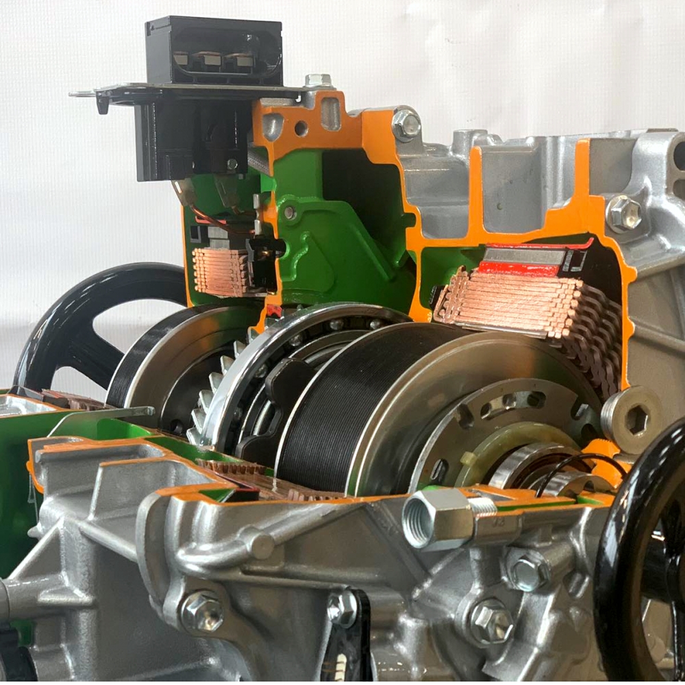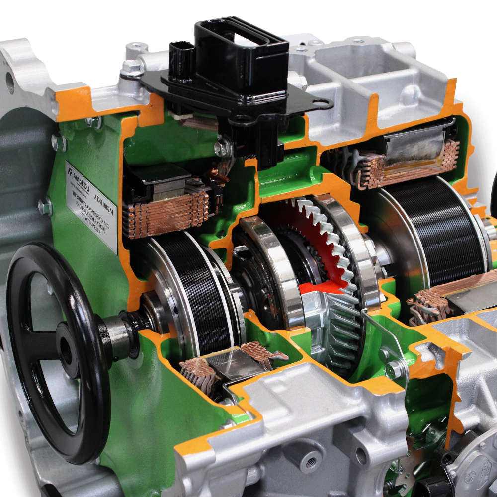 Hibridinės transmisijos MG (variklis/generatorius) pjūvio mokomasis treniruoklis