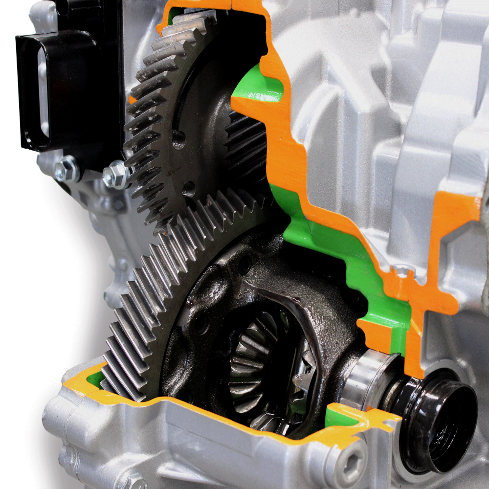 - Planetinė pavarų dėžė vizualizuoja nuolatinių perdavimų mechanizmą (CVT) hibridiniame sistemoje, pabrėžiant tradicinės pavarų dėžės nebuvimą.