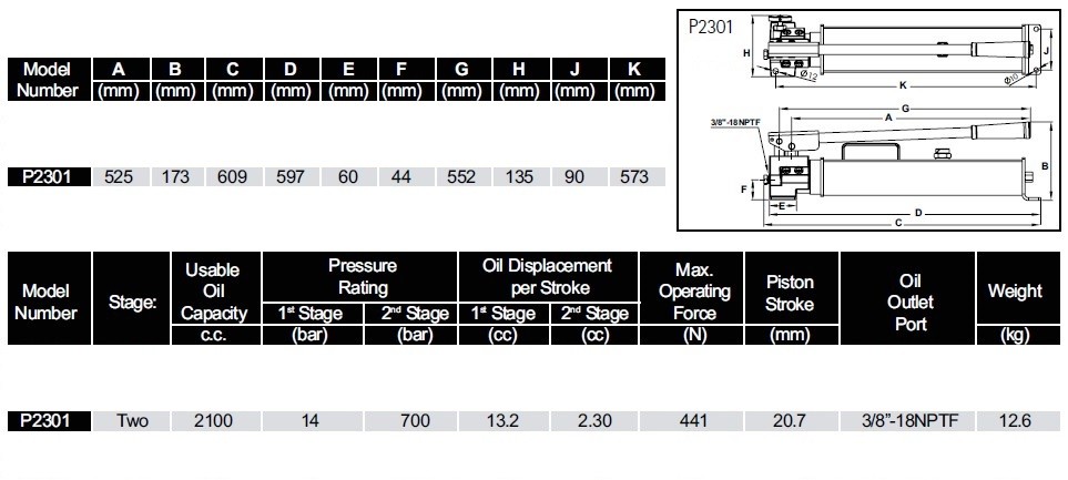 Dvigubo greičio rankinis hidraulinis siurblys, 2100 cc