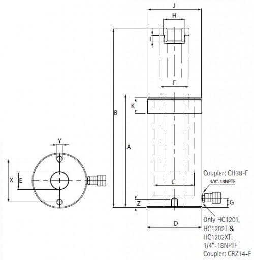 Hidraulinis cilindras su praeinamuoju gręžiniu 20 t