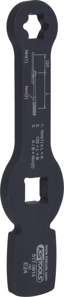 • su išgraviruota sukimo momento perskaičiavimo formule, skirta pailgintai svirčiai